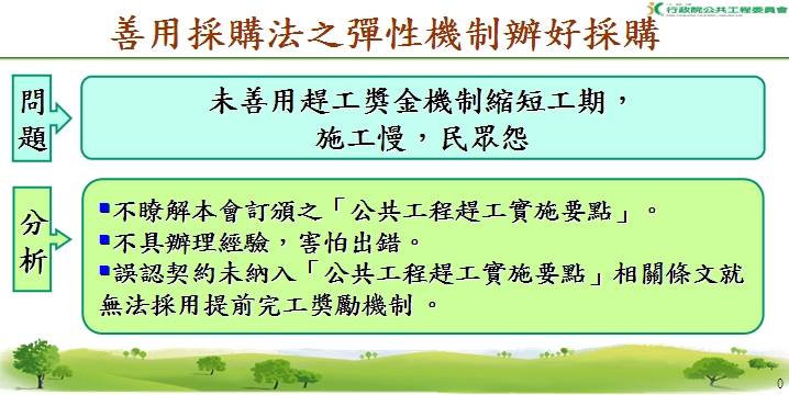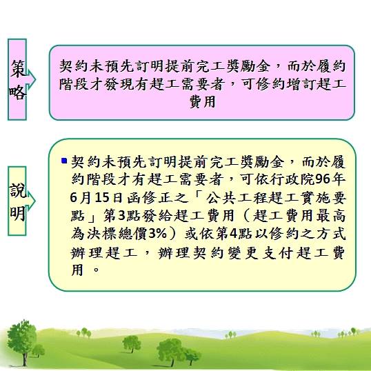 未善用趕工獎金機制縮短工期,施工慢,民眾怨,該怎麼辦?